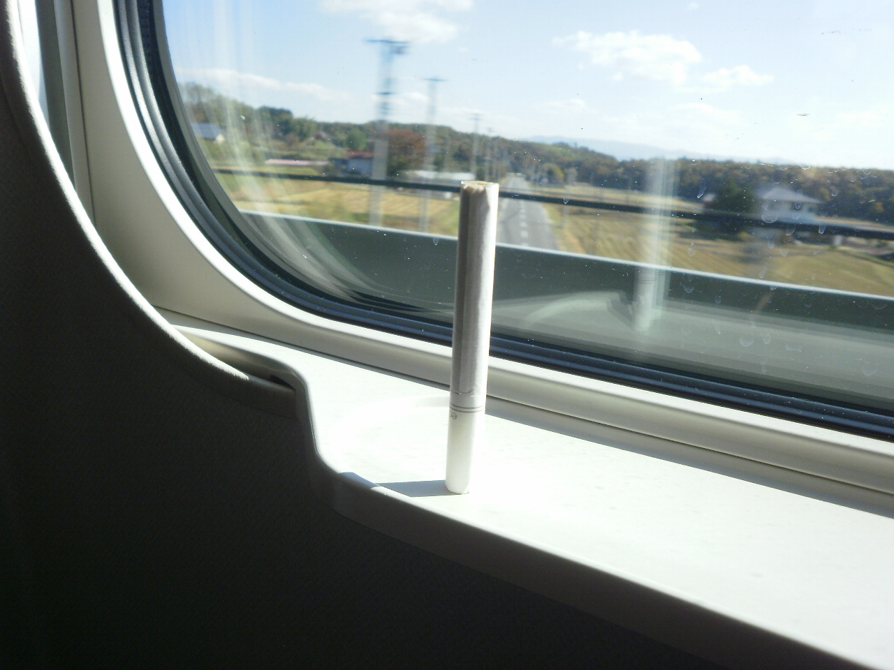 そんなに揺れないな。タバコを立てて実験。